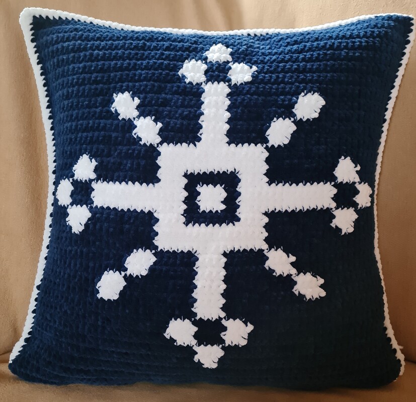 Das Kissen ist mit Myboshi Samt gehäkelt wurden, mit einer 6,0 Häkelnadel.
