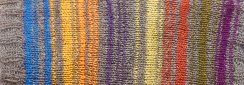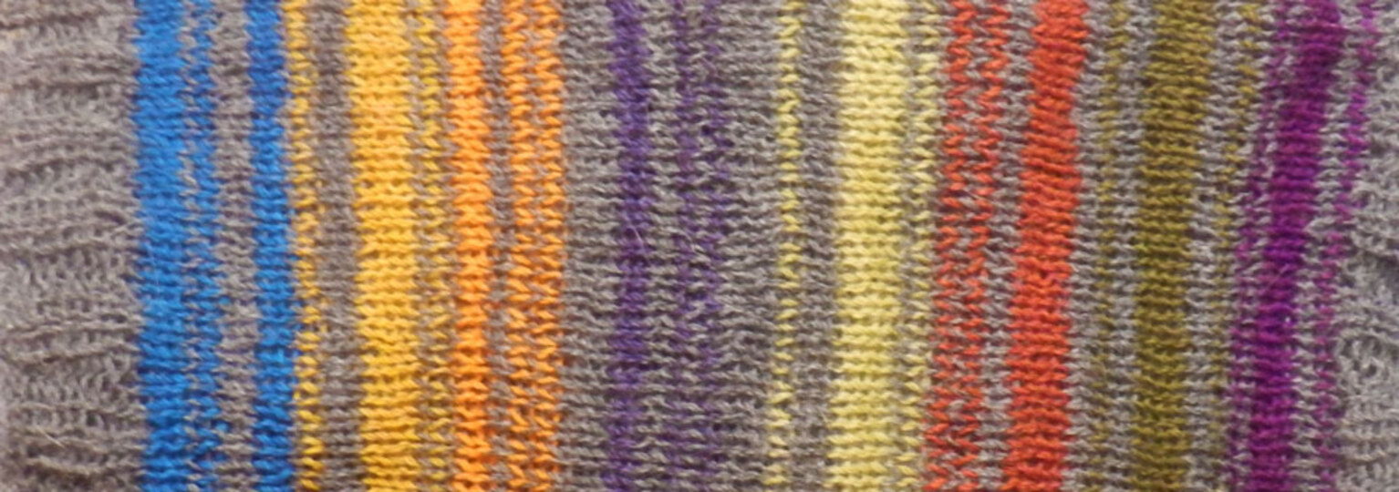 Grundsätzlich kann jedes beliebige Garn und Nadelstärke für das Streifenmuster genommen werden. Wie man die Größe ans Garn und Text anpasst, ist genau beschrieben.