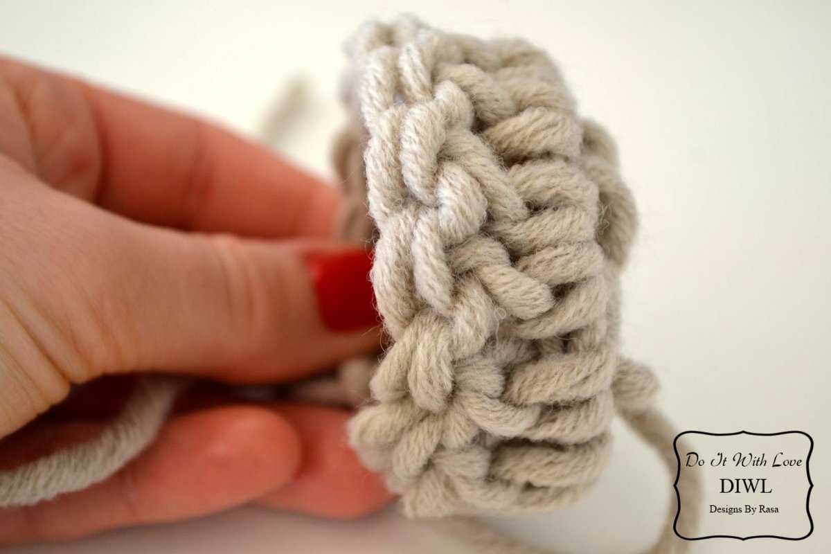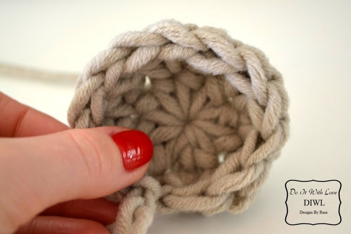 Das Garn sollte schön dick sein oder nehme ein Garn doppelt, damit die Größe stimmt.