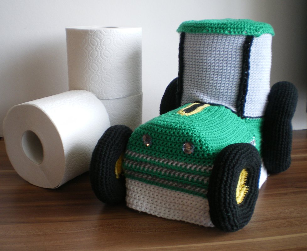 Ursprünglich gedacht als „Hut“ für 3 Toilettenpapier-Rollen ist dieser ca. 30x20x20 cm große Trecker aber auch eine tolle Deko-Idee – nicht nur für einen Bauernhof und auch anderweitig vielseitig einsetzbar! Sogar als Spielzeug kann der Trecker dienen! Dazu einfach die Toilettenrollen gegen eine Menge Füllwatte austauschen…