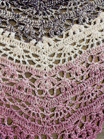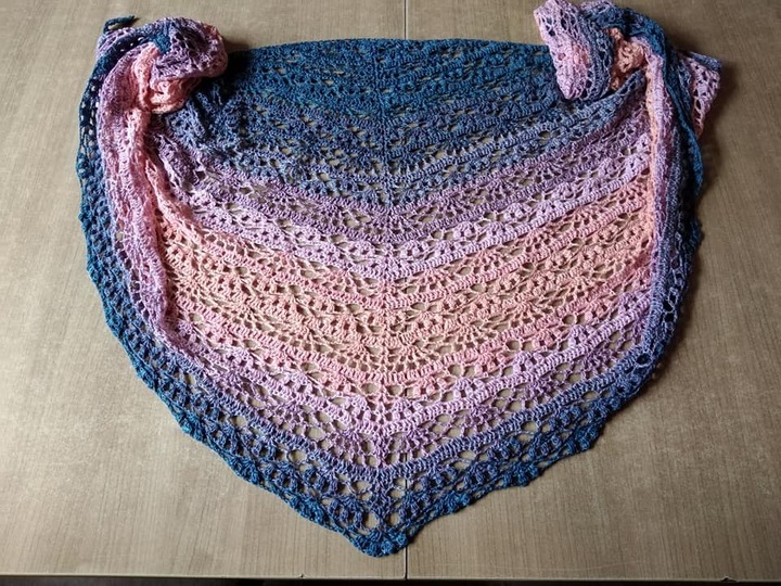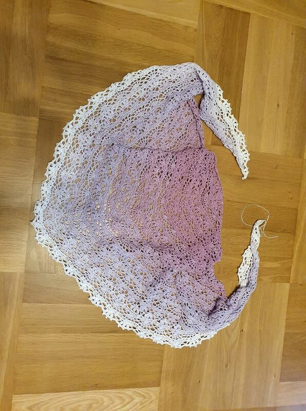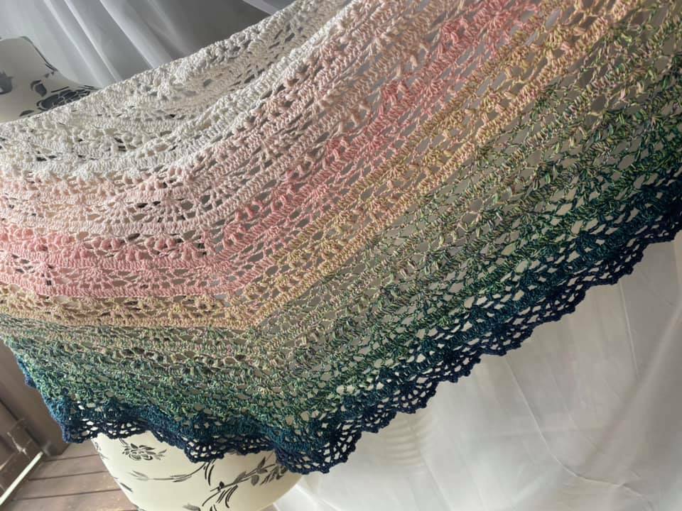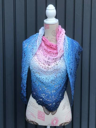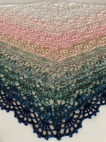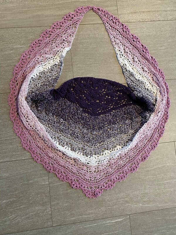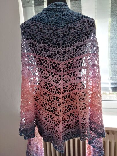 Mein Tuch hat die Maße 195 x 55 cm (ungespannt) Bobbel war 800m 4 fädig mit Nadelstärke 3,5 gehäkelt