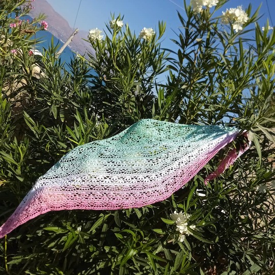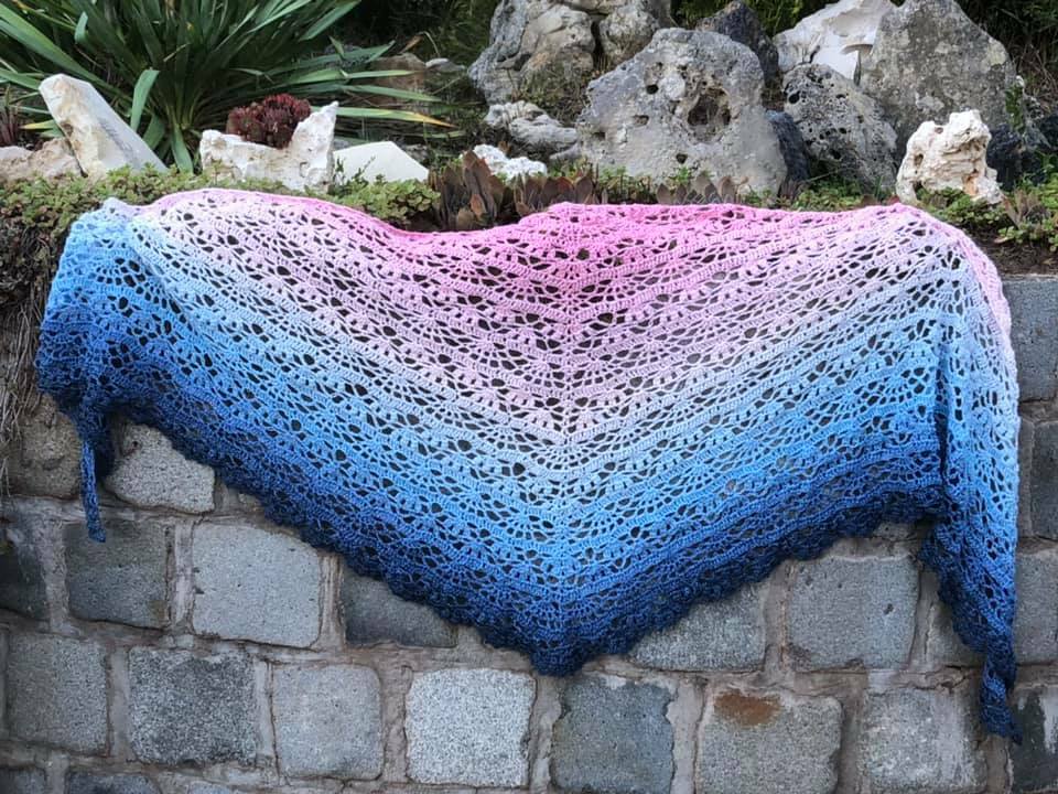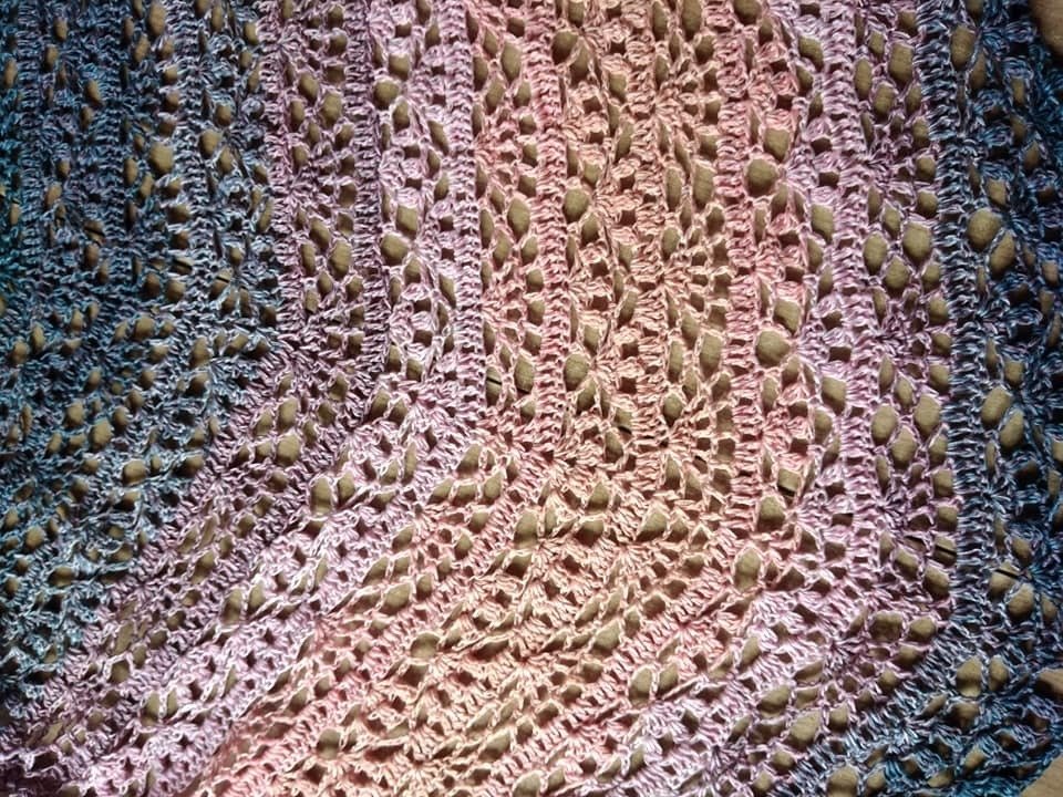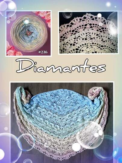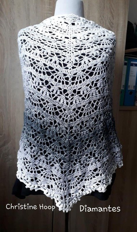 Als ich dieses entworfene Muster sah, schwirrten mir sofort Diamanten im Kopf herum. Da ich all meine Anleitungen mit einem spanischen Namen taufe, wurde dieses wunderschöne Tuch auf den Namen „Diamantes“ getauft.