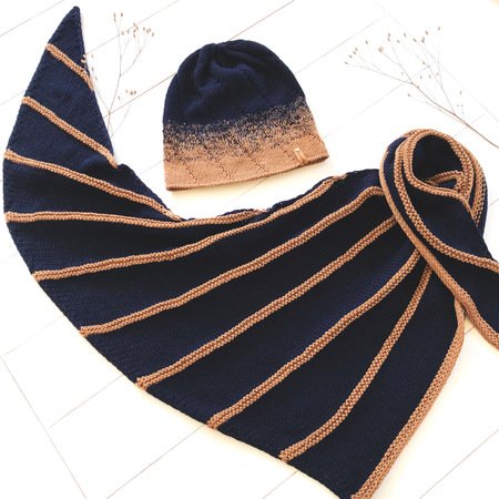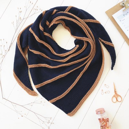 Das Tuch STRIPY wird von der rechten Spitze zur linken langen Seite gestrickt. Die Form des Tuches entsteht durch Zu- und Abnahmen. Das Muster enthält nur rechte und linke Maschen. Dabei wird der Hauptteil eines Mustersatzes glatt rechts gestrickt und endet mit glatt kraus. Der Mustersatz ist schnell einprägsam, welcher sich dann laufend wiederholt. Du kannst das Tuch beliebig groß stricken. Um einen besonders schönen Abschlussrand zu erzeugen, kann am Ende als Alternative zum „normalen Abketten“ als I-Cord abgekettet werden.