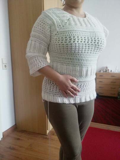 Es ist alles beschrieben und meine Probehäklerinnen haben es bereits auf Herz und Nieren getestet und wunderbare kuschlige Pullover gearbeitet.
