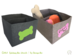 Spielzeug-Box gefüttert, in zwei Größen. Optional mit Trennwand und Applikation