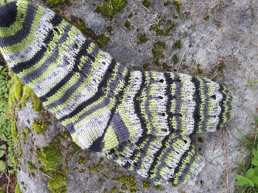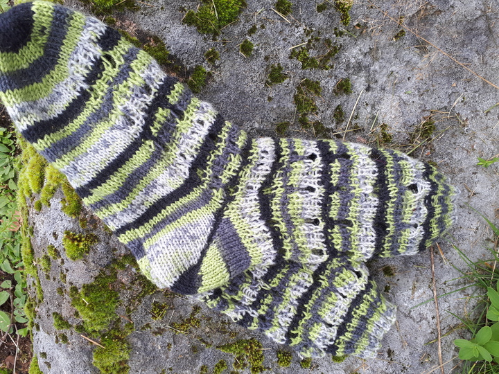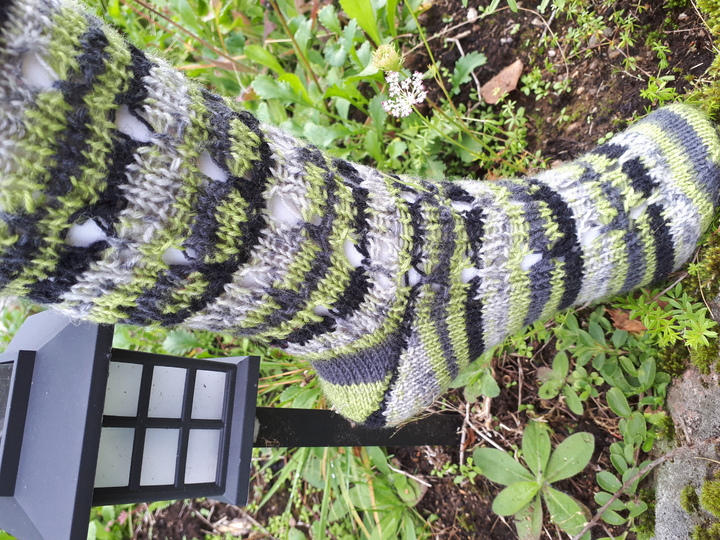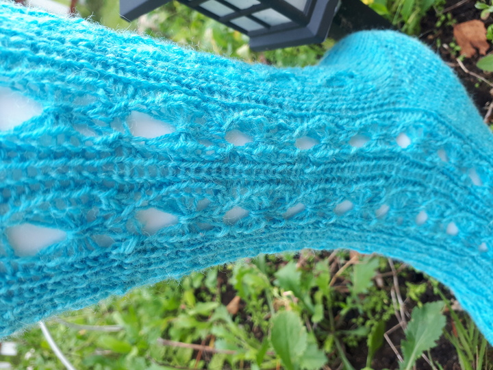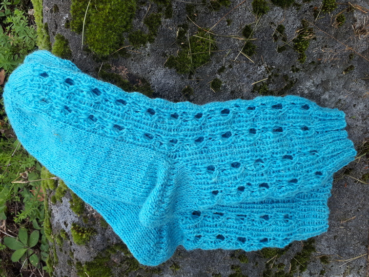 Ein sehr schönes Lochmuster mit Fallmaschen. Es erinnert an kleine Schmetterlinge.