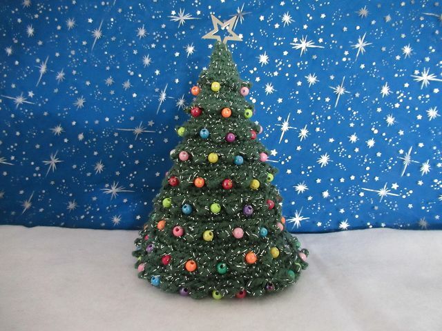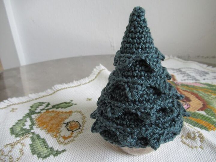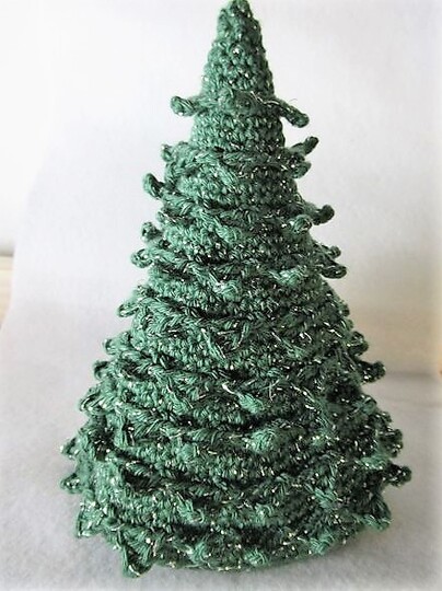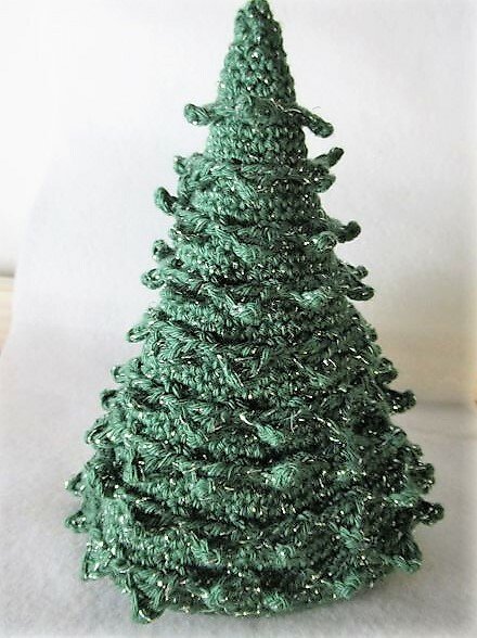 Der Tannenbaum kann in beliebiger Größe gehäkelt werden (etwa zwischen 5 und 15 cm Höhe)