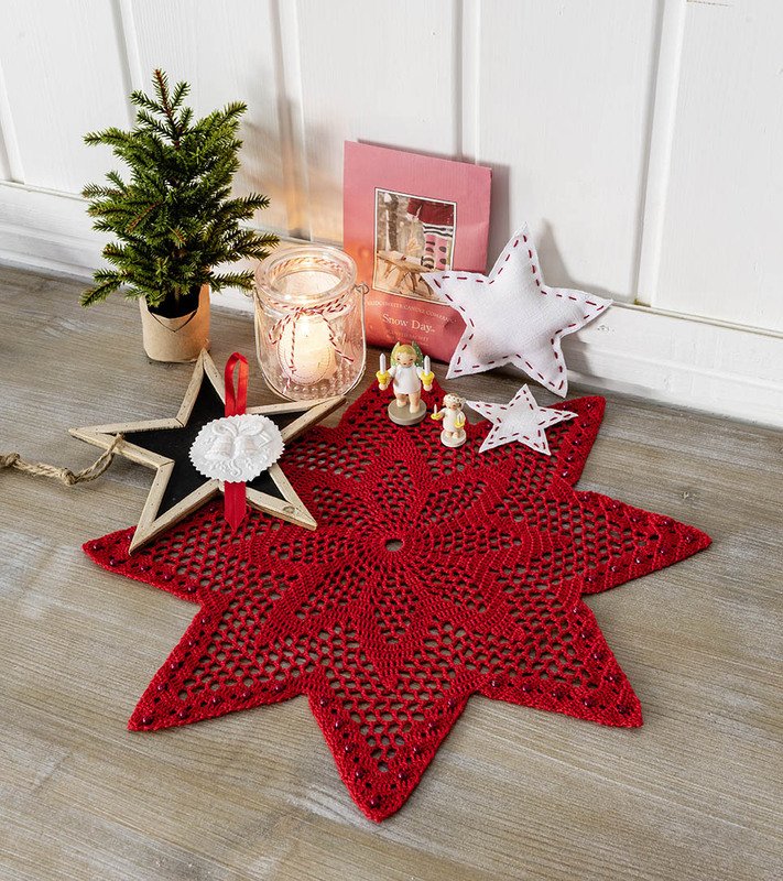 Die Anleitung umfasst 1 Sternendeckchen und einen passenden Teelichthalter