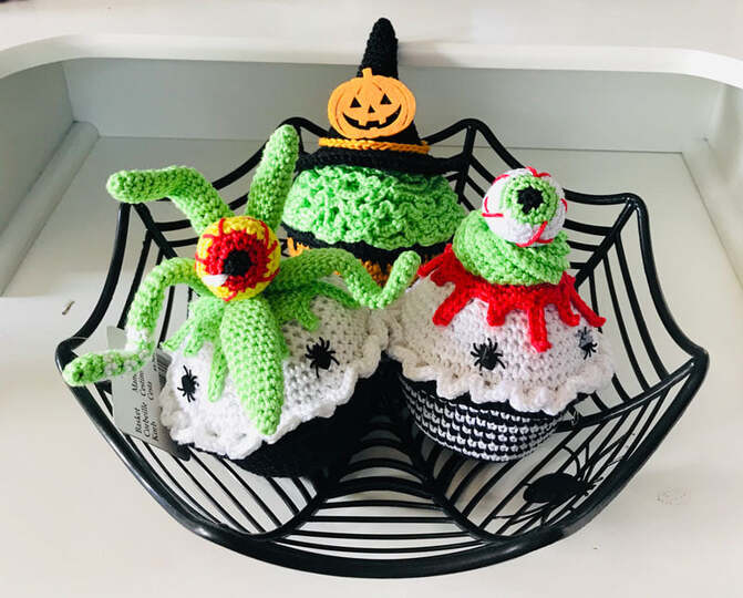 Mit dieser Anleitung erhältst Du die genaue Beschreibung, wie Du die schaurig schönen Halloween Cupcakes nachhäkeln kannst.