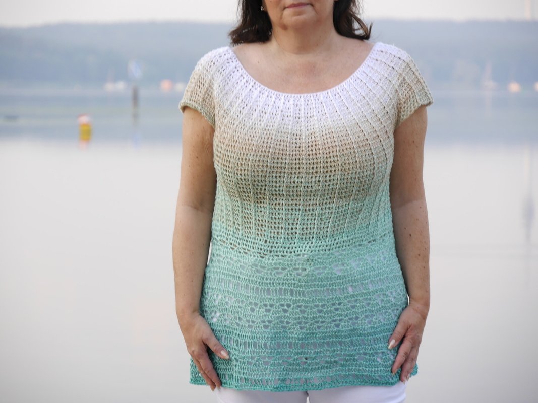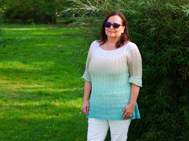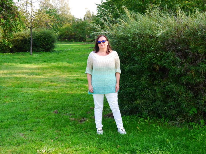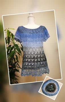 Das Modell wurde mit 4 fädigem Farbverlaufsgarn von Luxury Design gearbeitet, erhältlich bei mir.