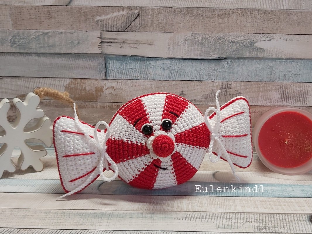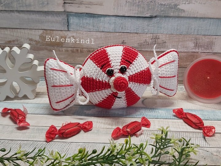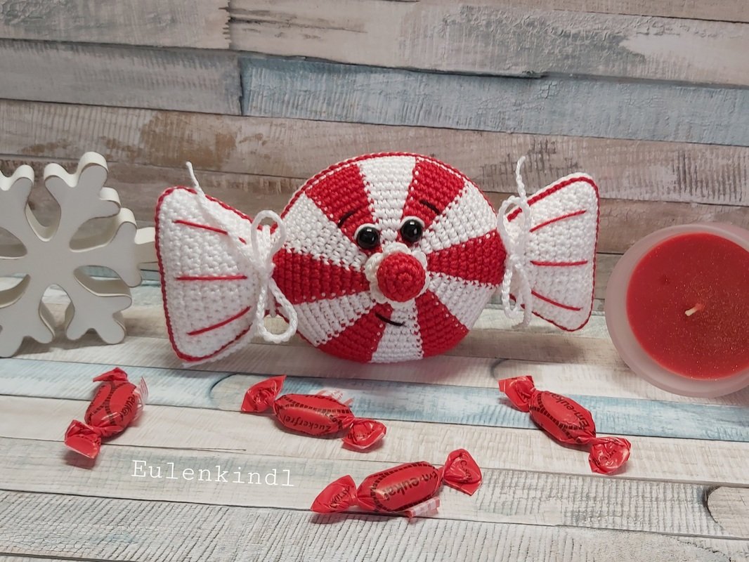 Mit dieser Häkelanleitung kannst Du dieses zuckersüße Bonbon/Pfefferminzchen ganz einfach häkeln!