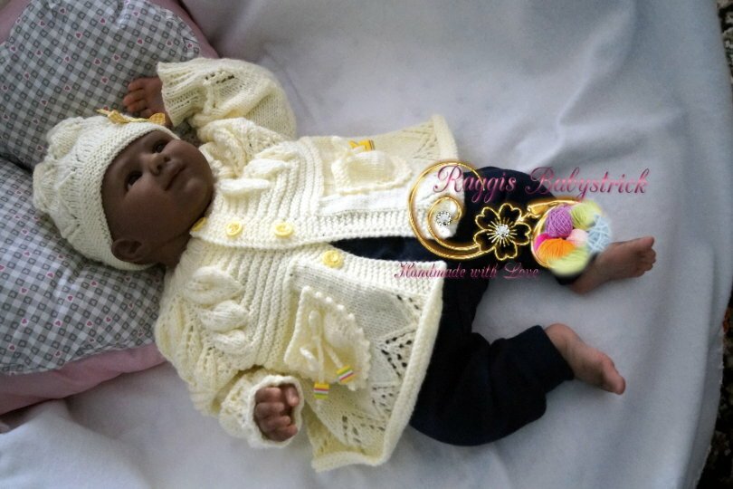 Strickanleitung für ein wunderschönes Set, 3-teilig für Babys & Reborns, Gr. 50 - 56 Das Set ist aus Babysoftwolle Nd. - Nr. 2,75 gestrickt. Die Anleitung ist sehr genau beschrieben und mit vielen Fotos. Du kannst mit dieser Schritt – für – Schritt – Anleitung dieses Set gut nacharbeiten.
