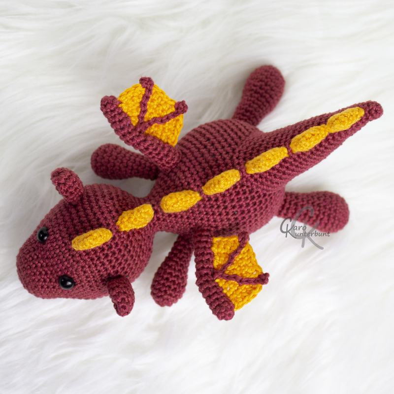 Die Anleitung von „Drache Fridolin“ ist ein Design von „CaroKunterbunt“ - Caroline Maahs. Das Urheberrecht liegt bei mir.