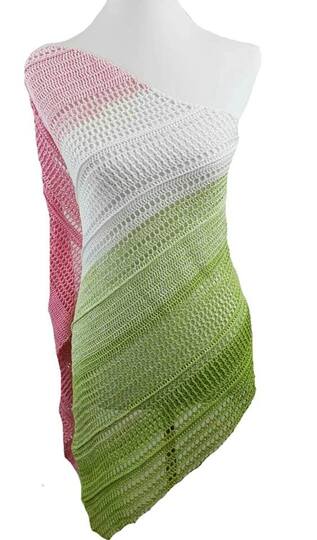 Für das Tuch wurde Bobbel "Frühlingsoase" von MT.Bobbelwelt verwendet. 1000LL 3Fädig und mit