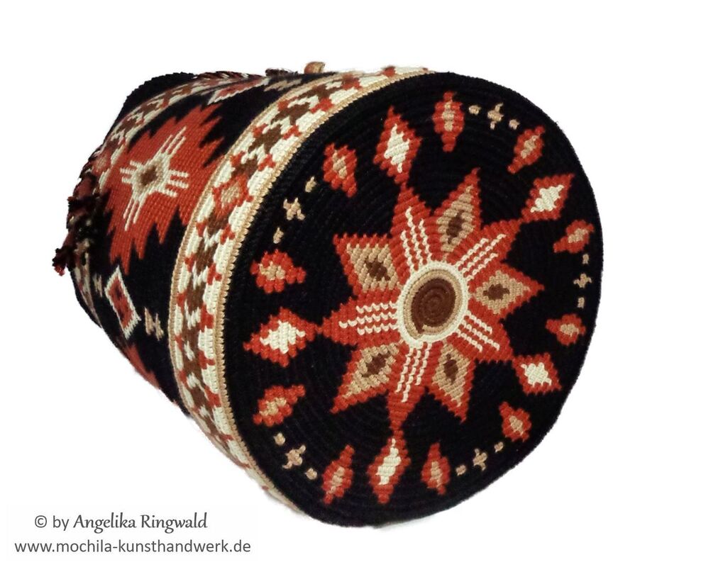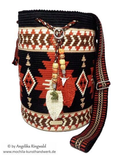 Diese wunderschöne Mochila ist nicht einfach eine „Häkeltasche“ oder ein „Häkelbeutel“. Sie wird in der originalen Wayuu-Technik gehäkelt und ist so stabil, dass sie von alleine aufrecht stehen bleibt. Der längenverstellbare Schultergurt kann auch als Cross-Body-Gurt getragen werden, so dass Sie beim Shoppen oder wo immer Sie Ihre Mochila einsetzen wollen, beide Hände für Wichtiges frei haben. Man wird Sie um Ihre Mochila beneiden!