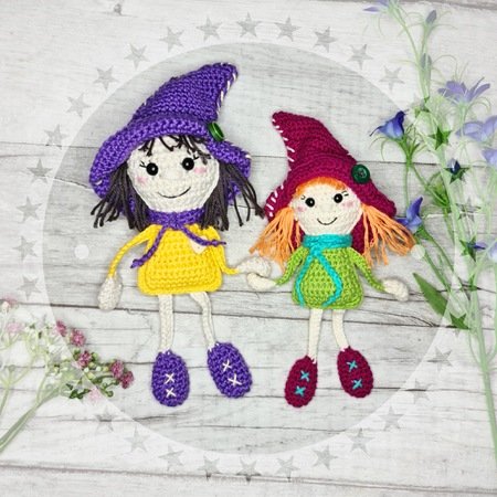 Mit angegebenem Garn wird deine Hexe mit Catania ca. 20 cm hoch, die kleine ca. 16 cm.