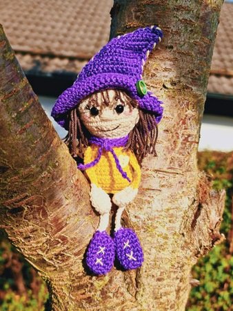 Die kleine, liebenswerte Hexe Walburga kannst du aus Wollresten ganz schnell selbst nacharbeiten.