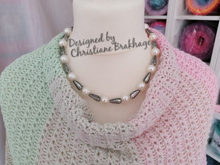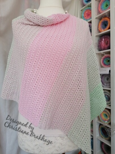 Er wird als Rechteck gearbeitet und kann auf verschiedene Arten getragen werden.
