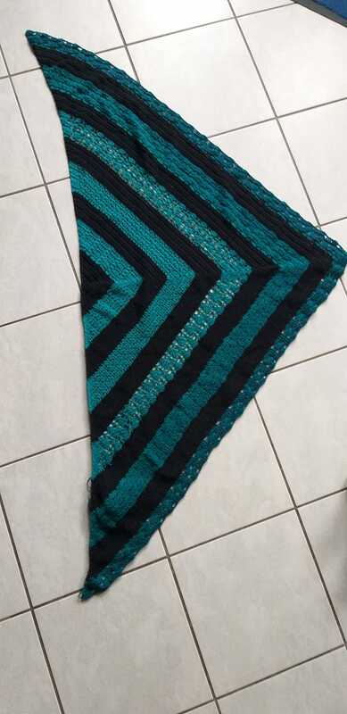 Wie auf den Fotos meiner Probehäklerinnen ersichtlich, ist das Tuch auch in zwei Unifarben ein Hingucker.