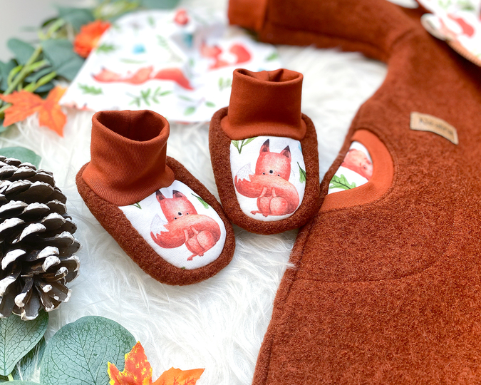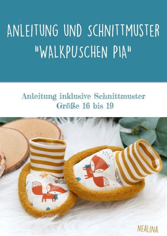 Das Schnittmuster für die Puschen ist extra auf Walk ausgelegt – kann aber auch mit Sweat, Jersey, etc. genäht werden. Die Walkpuschen gibt es in vier Größen und sie eignen sich ideal als „Überdrüber“ für die kalten Tage. Alle Schritte werden sehr genau erklärt und somit ist die Anleitung auch bestens für Anfänger geeignet.