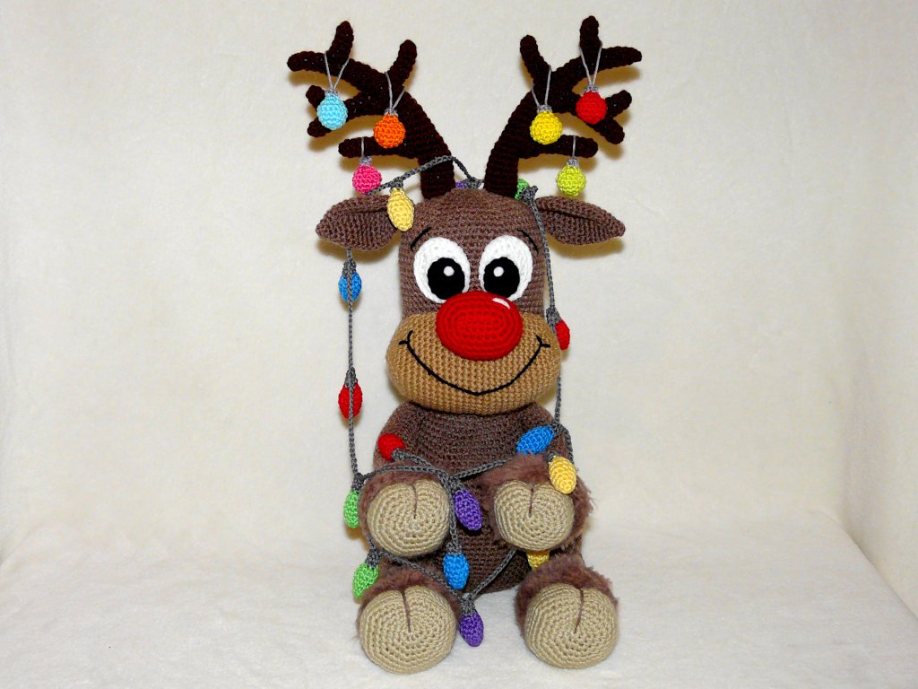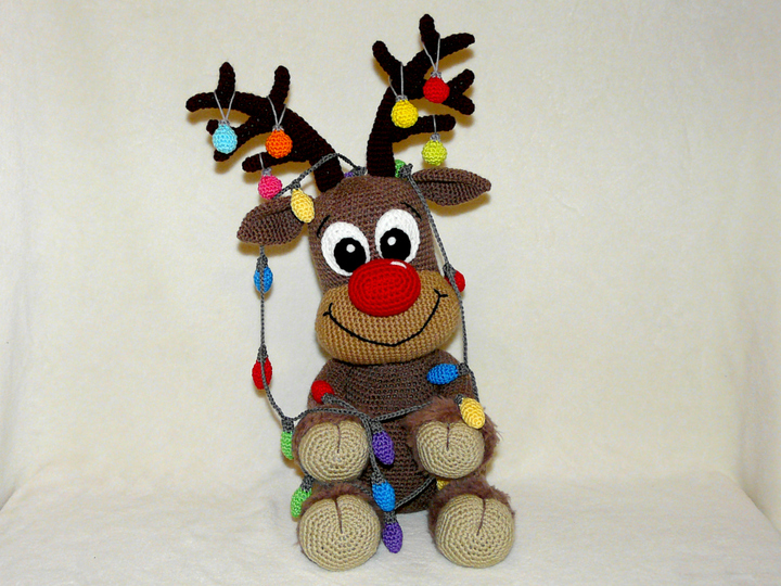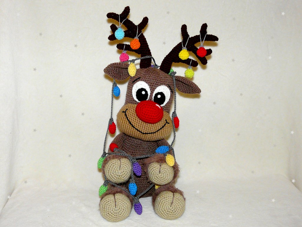 Ich beschreibe euch in der Anleitung wie das Rentier, die Kugeln und die Lichterkette gehäkelt werden.