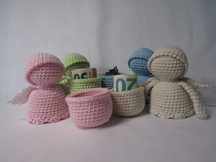 Engel Größe ca. 9,5 cm - Durchmesser innen 3 cm - Tiefe pro Schale 2 cm - gesamt 4 cm.