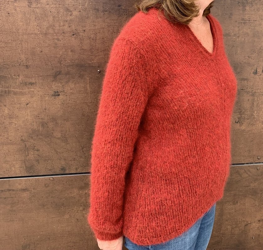 Dieser leichte „Fluffi“ wiegt nur 166 g und wird mit einer 4,5er Nadel gestrickt. Der Pullover ist sehr leicht zu Stricken und ist daher für Anfänger super geeignet.