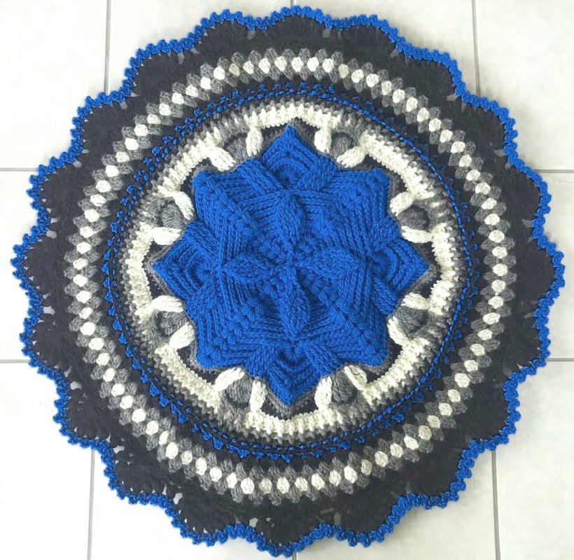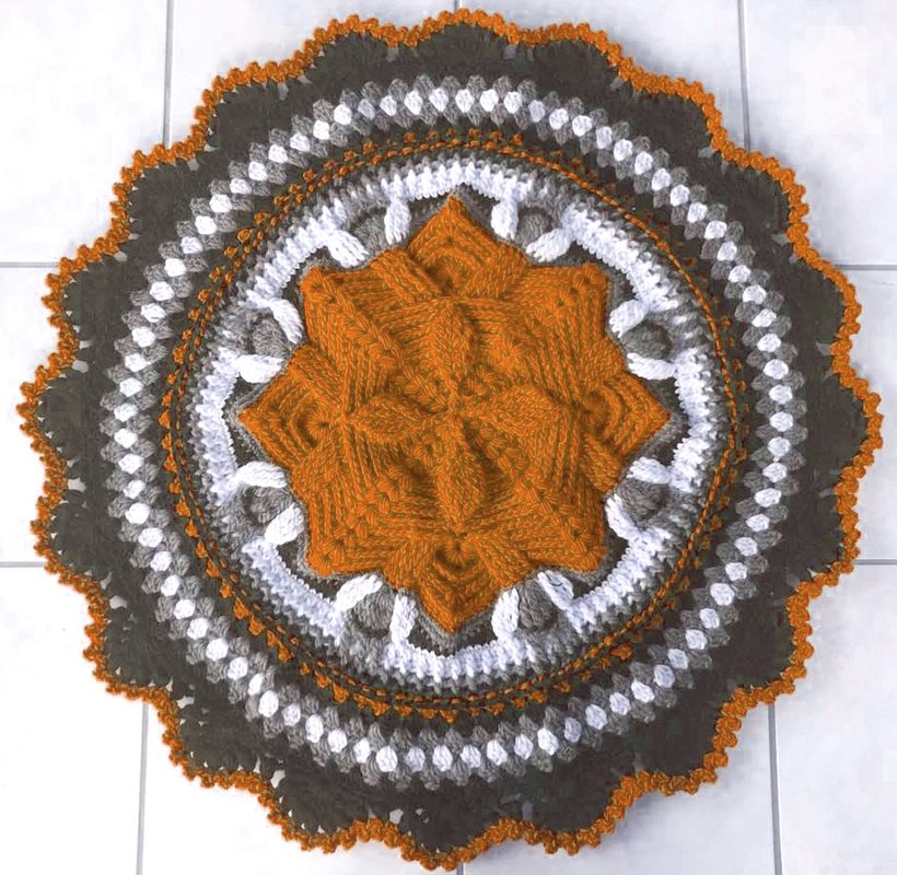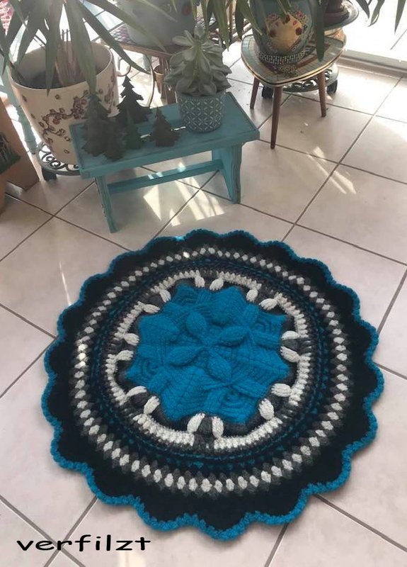 Den schönen Teppich "Reliefstern" habe ich aus ca. 750 gr Filzwolle gehäkelt