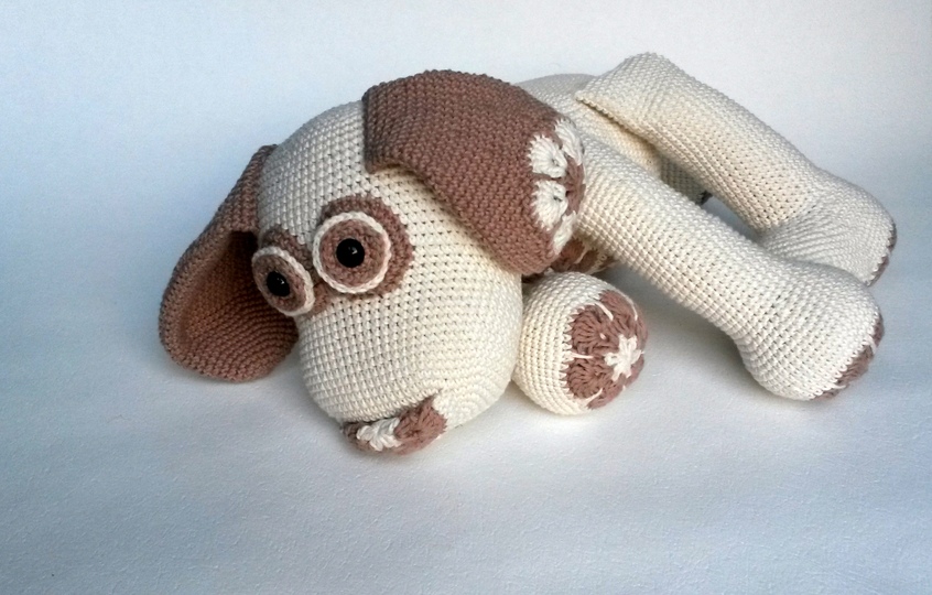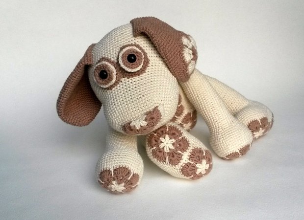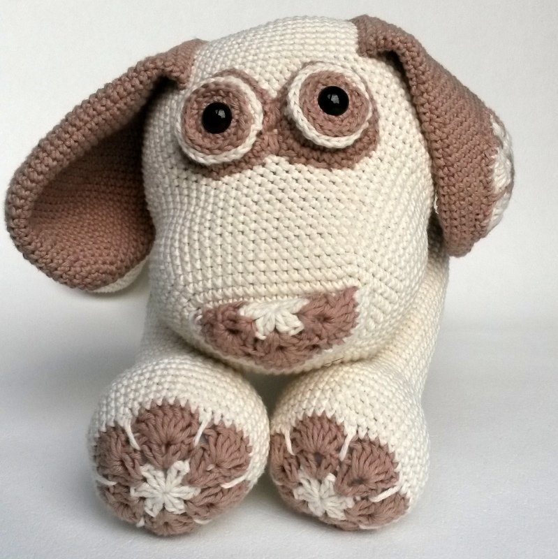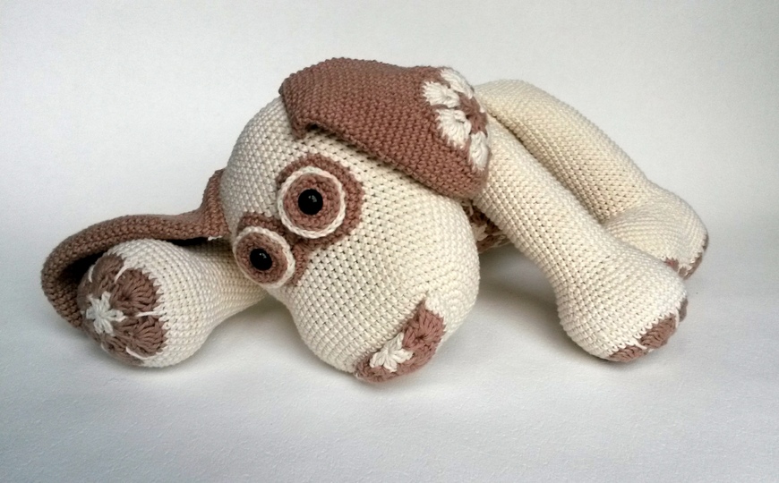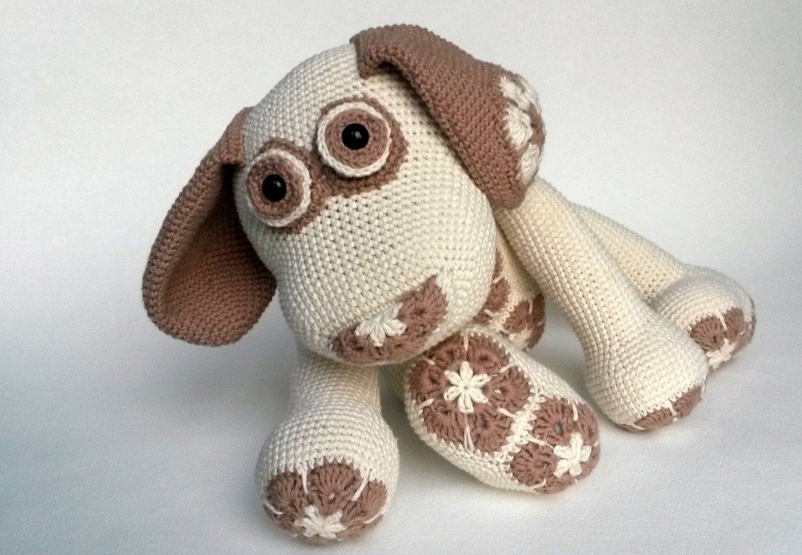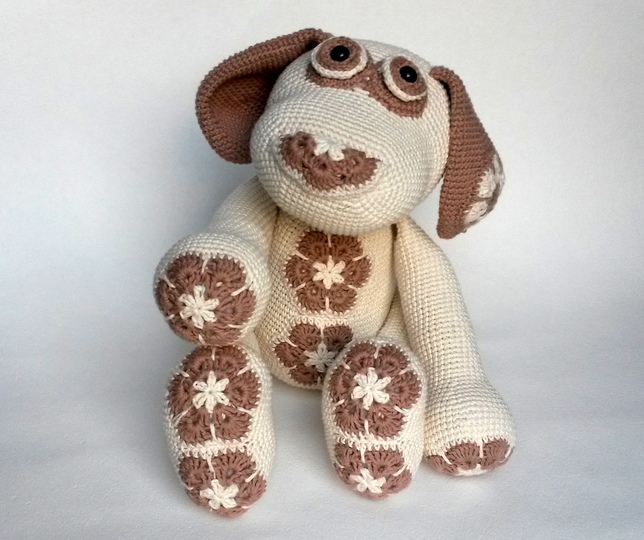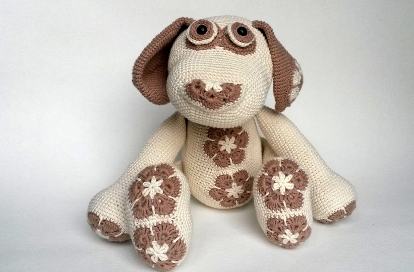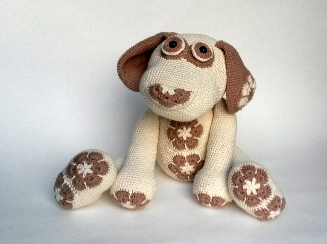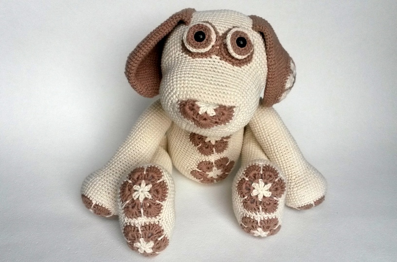 Das Blumenhundi wird mit Verwendung von Gründl Cotton Fun und einer Nadelstärke 2,5 rund 35 cm groß. Die tatsächliche Größe hängt aber natürlich auch maßgeblich von der eigenen HÄkelweise ab.