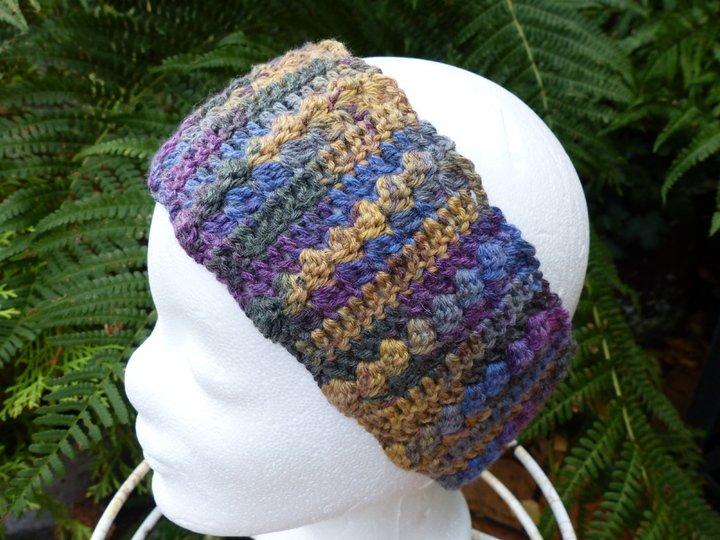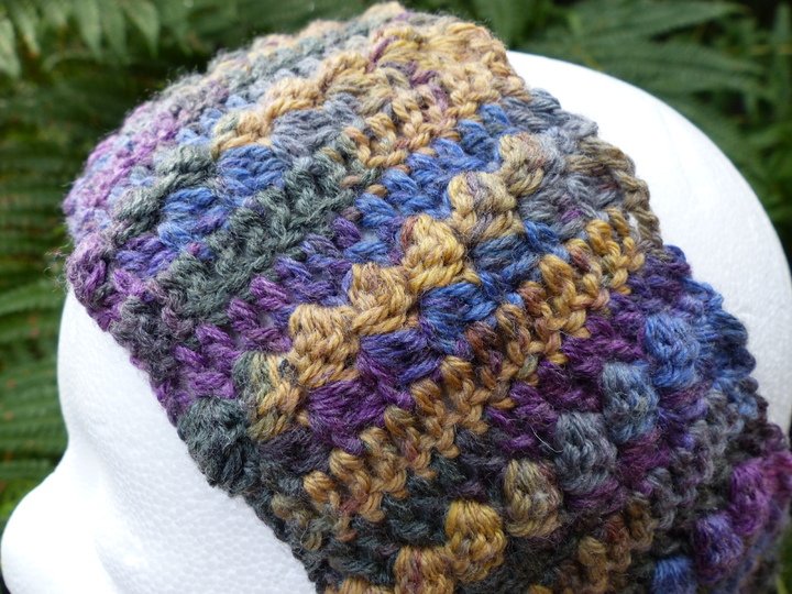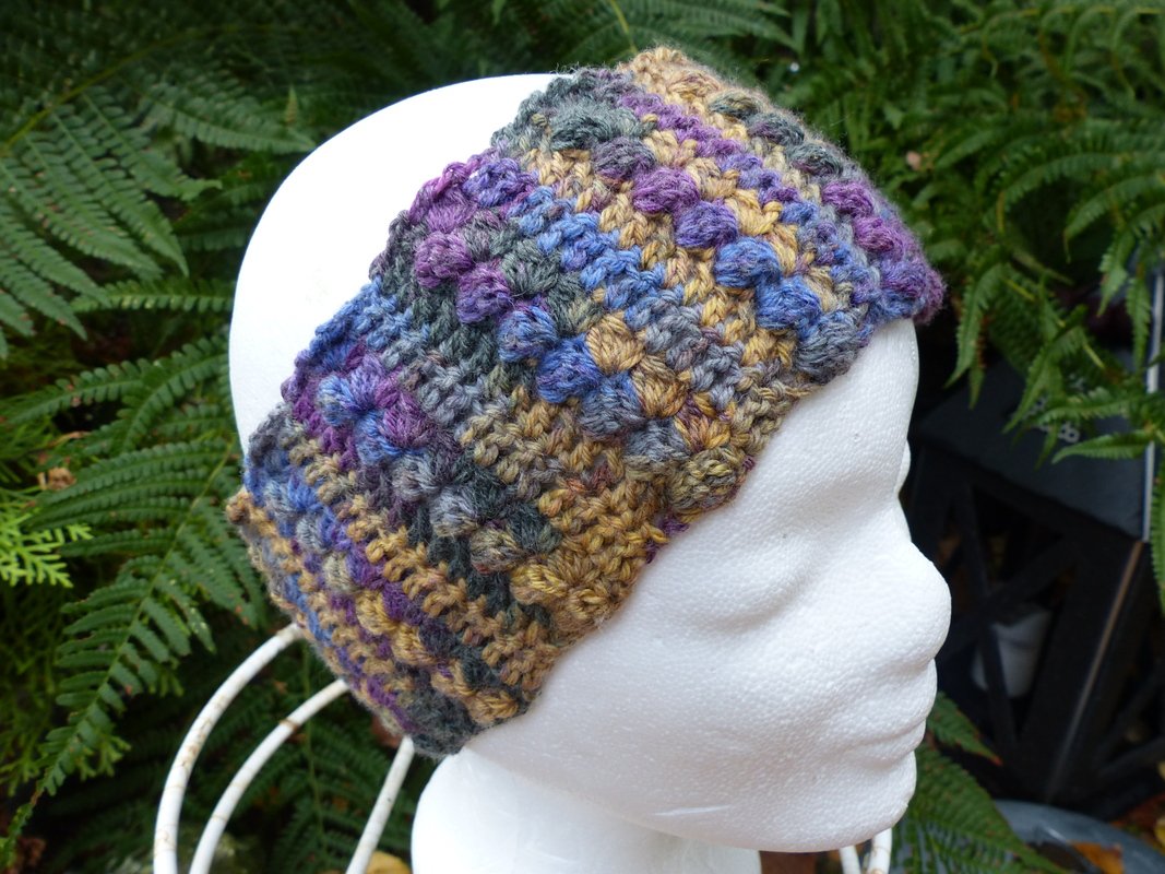 Ich habe das Stirnband mit verschiedenen Garnen gehäkelt.