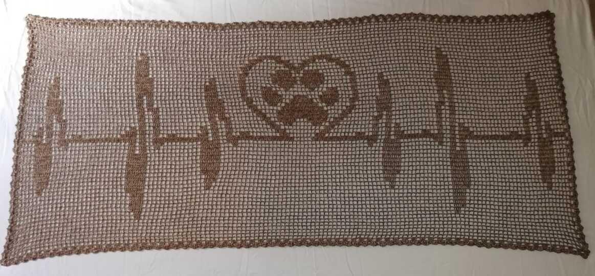 Die Anleitung ist auf 6 Seiten in teilweise Schrift (Erklärung Filethäkeln), der Anfang des Tuches in Pc-Häkelschrift und Zählraster geschrieben.