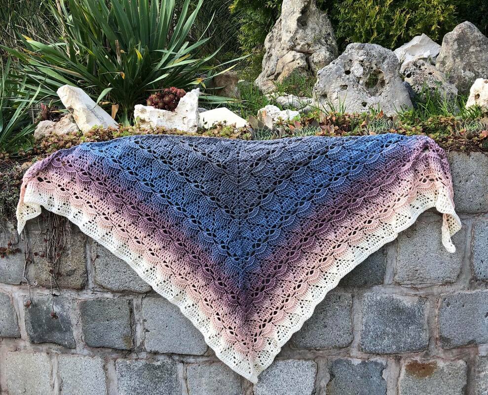 Als ich dieses Muster entwarf, musste ich sofort an den höchsten Gipfel des Pico del Teide denken, der mit seinen 3718 Meter im Gebirge der Kanarischen Inseln, in der Provinz Santa Cruz de Tenerife zu sehen ist. Daher habe ich das schöne Tuch auf den Namen „Cumbre“ getauft.