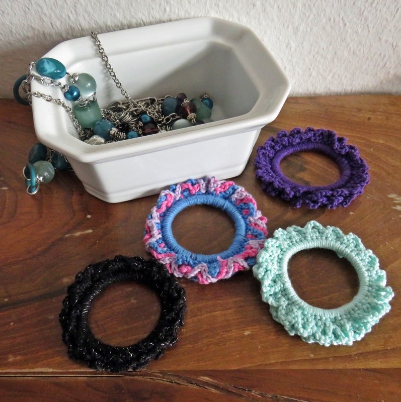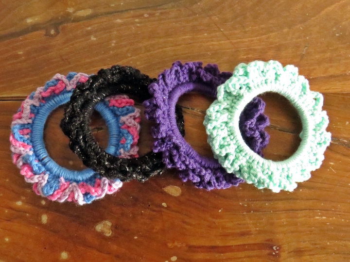 Diese kleinen, selbst umhäkelten Haargummis kannst du ganz einfach nacharbeiten in den Farben, die gerade zu deinen Outfits passen.