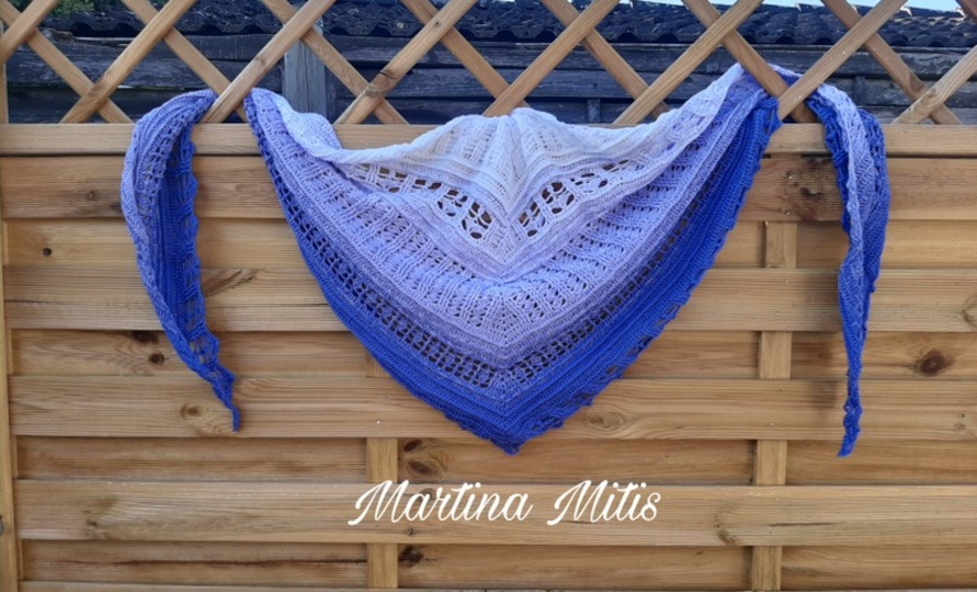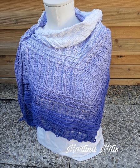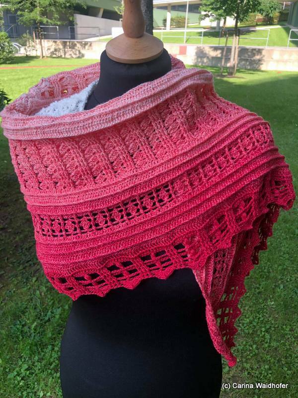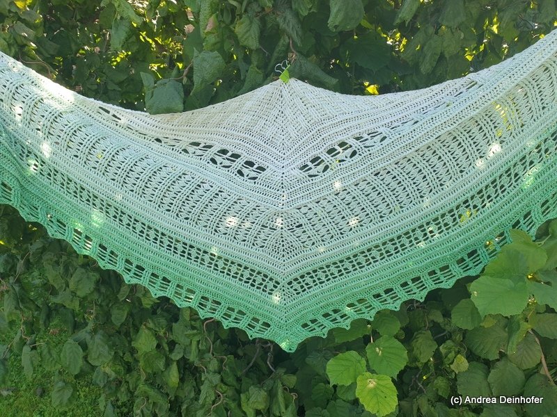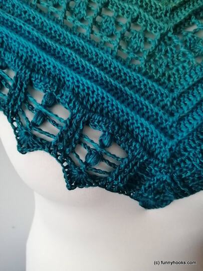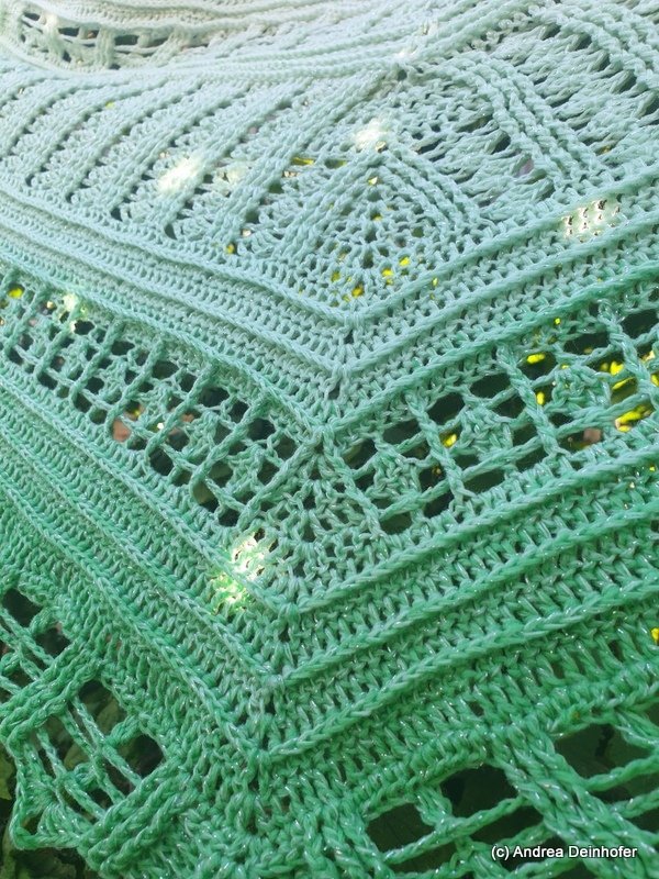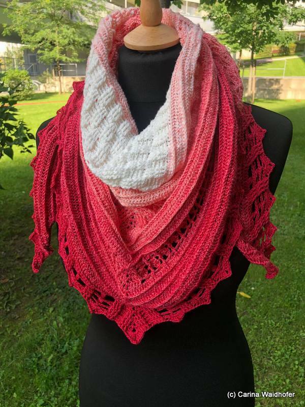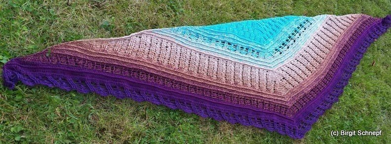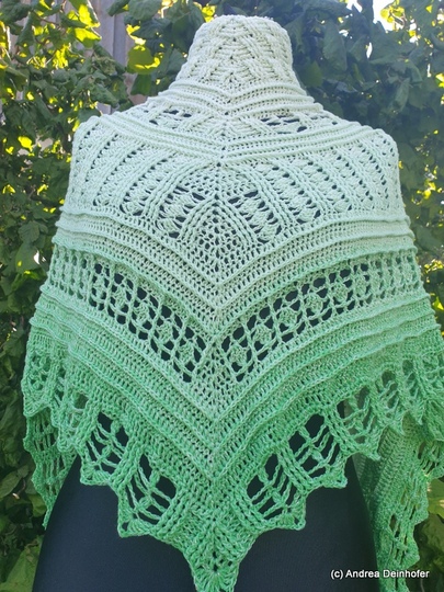 Abrienda ist das Tuch aus dem gleichnamigen Funny Hooks CAL. Es handelts ich um ein flaches, nicht so tiefes Dreieckstch, besteht aus vielen Reliefmustern und passt einfach überall.