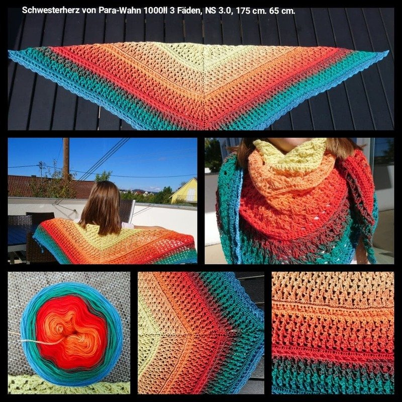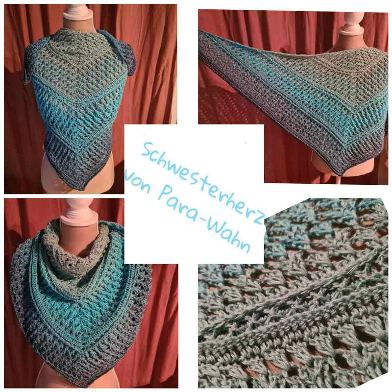 Gerne dürfen Tücher in geringer Anzahl und mit Angabe „gehäkelt nach einer Anleitung von Para-Wahn“ verkauft werden.