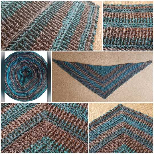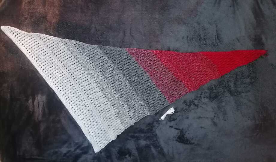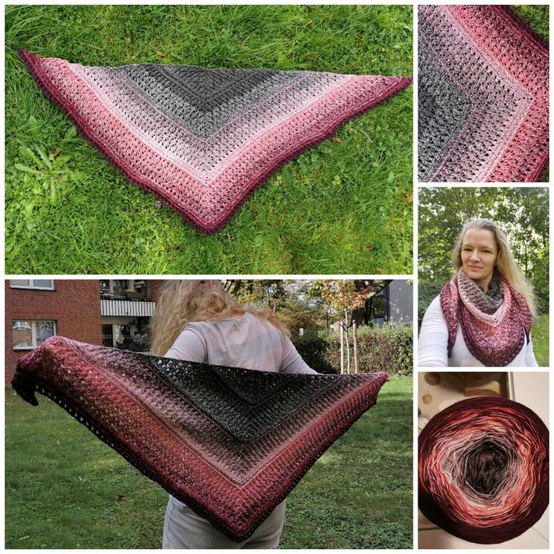 Für das Dreieckstuch empfehlen wir 3f oder 4f Bobbel mit mind. 1000 m Lauflänge für eine Tuchgröße von etwa 160 x 65 cm.