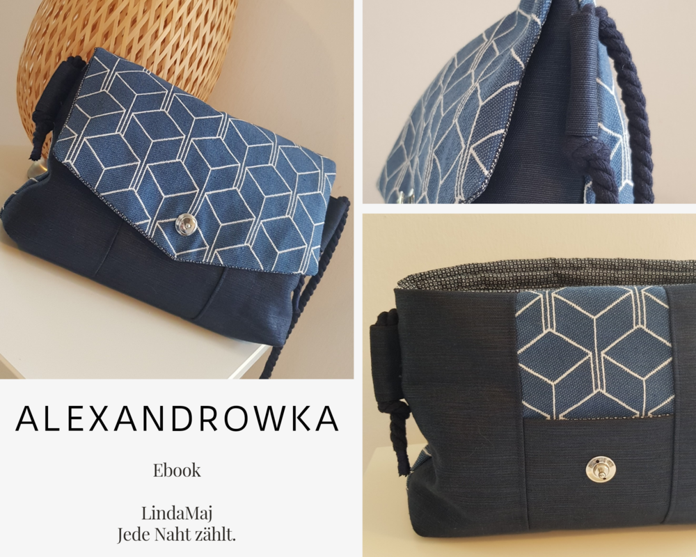 Das Besondere an ihr ist vor allem die Taschenklappe. Sie zeigt dieses Mal keine Rundungen, sie ist eckig und gerade das macht meiner Meinung nach diese Tasche aus. Die Anleitung beinhaltet jedoch eine runde Taschenklappen-Variante.