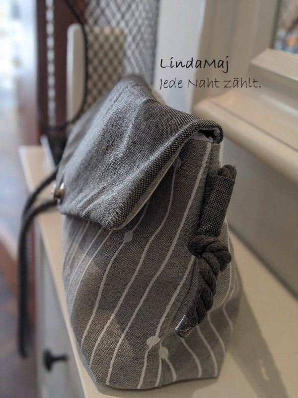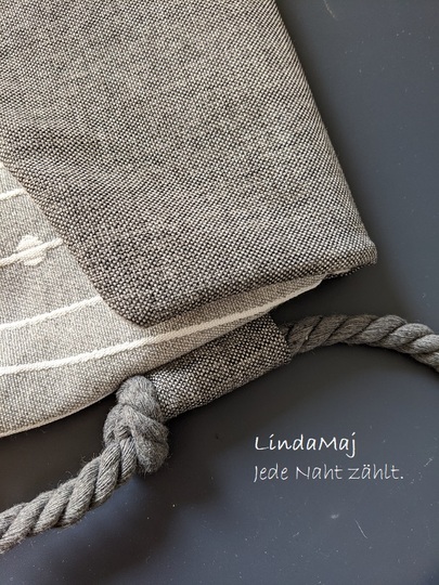 Als Träger ist eine Kordel vorgesehen. Dafür habe ich mich ganz bewusst entschieden. So wirkt die Tasche filigraner.