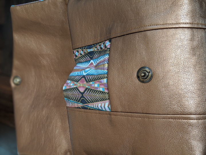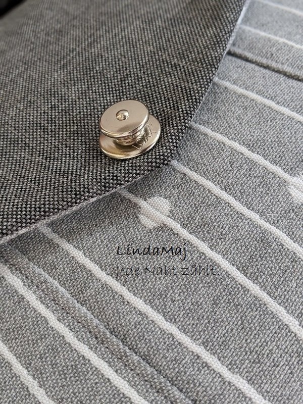 Für den Taschenverschluss habe ich einen LOXX Knopf verwendet. Ich bin völlig begeistert von diesen Knöpfen!! Die Tasche lässt sich nur durch Ziehen des Knopfes öffnen. Die Tasche lässt sich super leicht öffnen und schließen, fast so wie mit einem Magnetverschluss. Allerdings ist dieser Verschluss wesentlich sicherer als Magnetknöpfe, weil man eben dran ziehen muss.