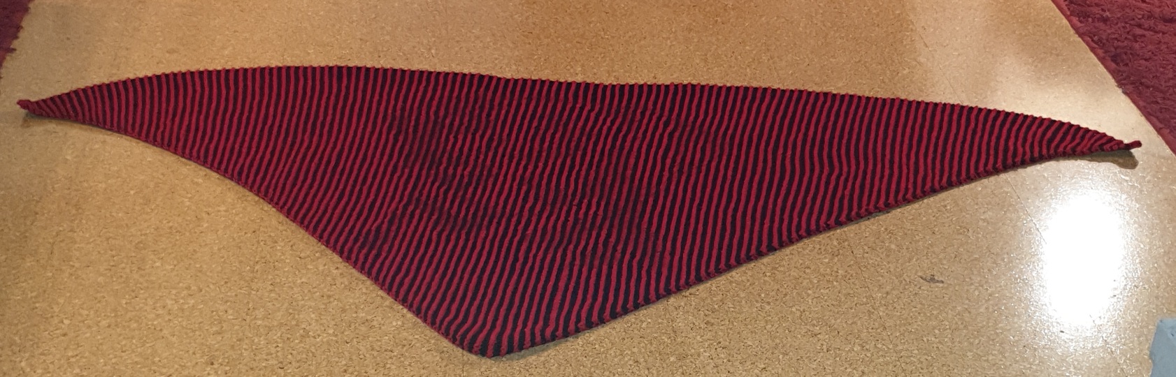 Das Tuch ist an der Spitze 134 Maschen und in der Breite sind es 264 Rückreihen. Das heißt das Tuch ist 80 cm x 210 cm.