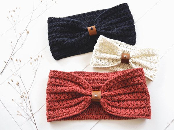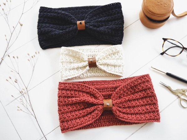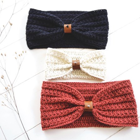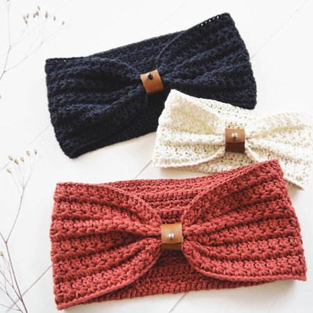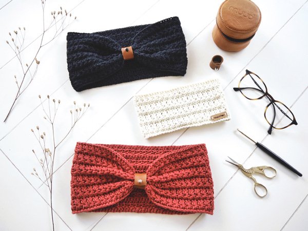 IDA ist ein gehäkeltes Stirnband mit Sternchenmuster. Die Raffung vorne wird mit Hilfe eines kleinen Raffbandes vorgenommen. Das Stirnband kann jedoch auch klassisch ohne Raffung getragen werden.
