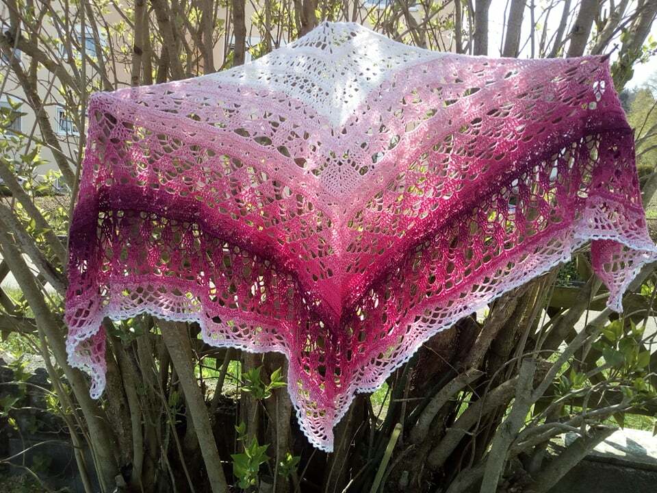 Der kleine Engel Lenja ist ein Dreieckshäkeltuch mit außergewöhnlichem Muster, die das Tuch sehr edel und romantisch aussehen lassen.