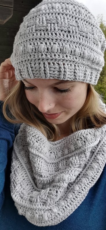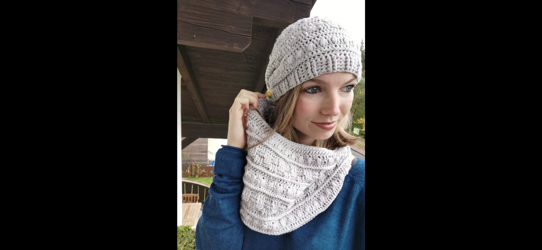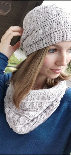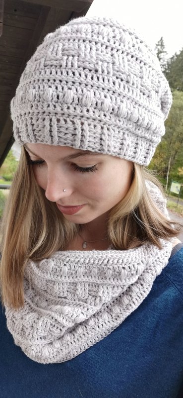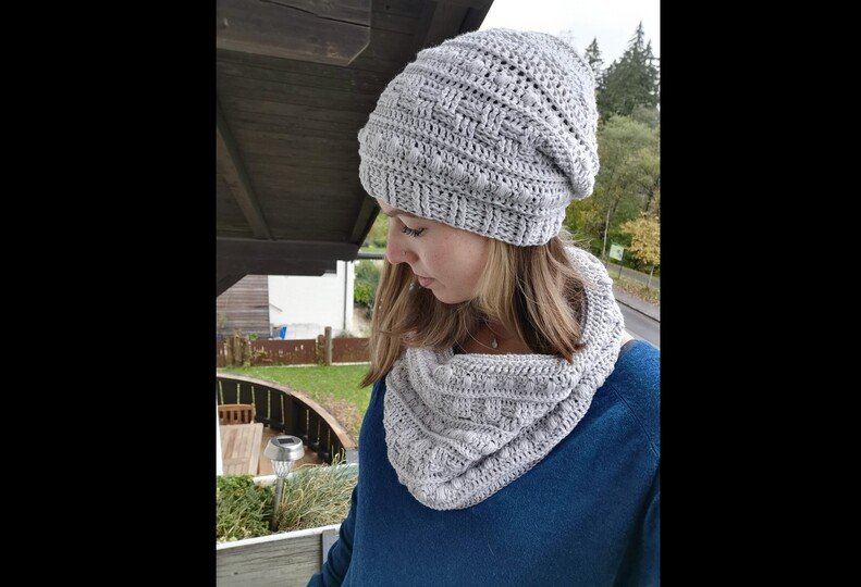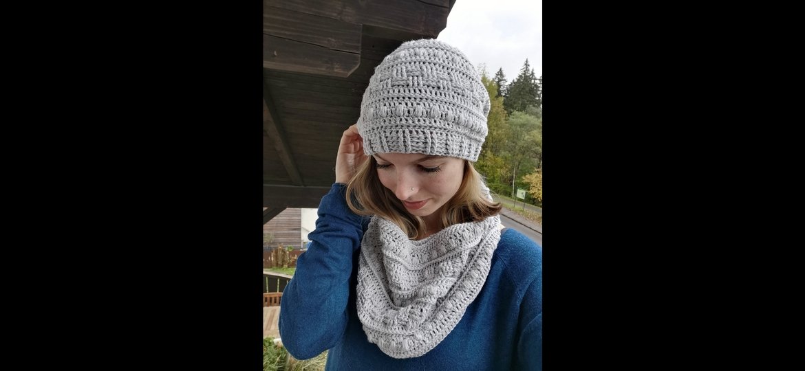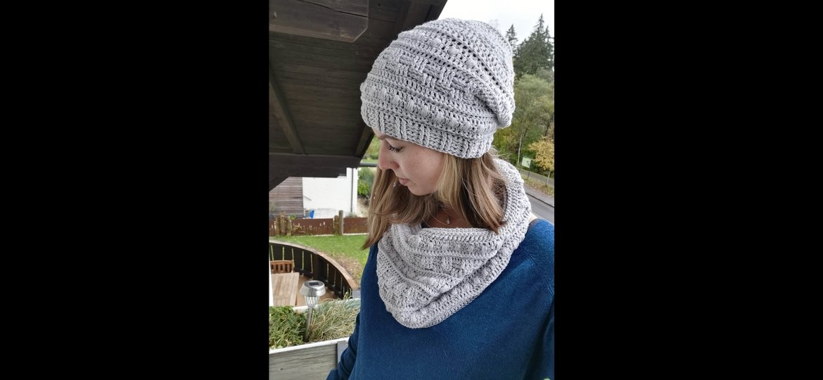 Passend für die Übergangszeit habe ich eine leichte Mütze und einen kleinen Loop gehäkelt.