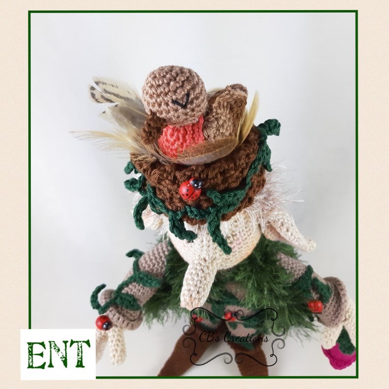 Wenn er nur ein Baum werden könnte! Ent liebt absolut alle Arten von Tieren, die im Wald leben. Wenn er könnte, wäre er ein Baum. Aber wenn man genau hinschaut, ist er fast ein Baum, mit einem Vogelnest auf dem Kopf und all dem Efeu, der um ihn herum wächst. Er brachte auch den Stock mit Erdnüssen für die Vögel, aber wenn ein Eichhörnchen eins nehmen will, hat er auch nichts dagegen. Er warnt mit einer Blumenuhr die Tiere vor Gefahren.