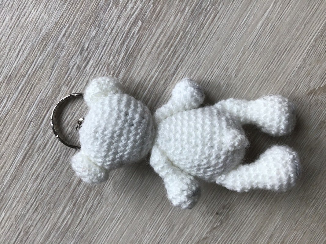Der fertige Eisbär ist, je nach Wolle, 7-10 cm groß.