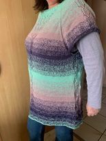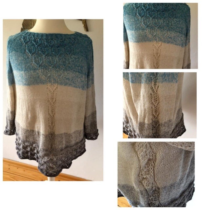 Die Größe ist variabel und wird beim Stricken individuell angepasst. Daher kann die Anleitung für alle Damengrößen heran gezogen werden. In der Anleitung sind Fotografien der Testerinnen in unterschiedlichen Größen mit jeweiliger Mengenangabe.