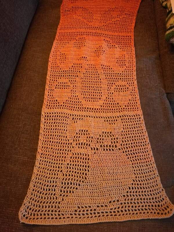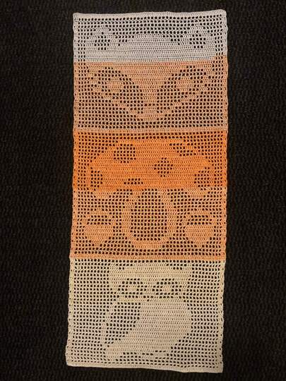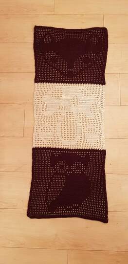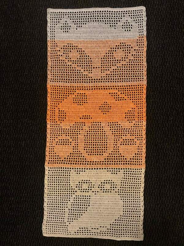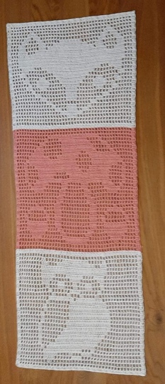 Die Anleitung enthält eine schriftliche Erklärung für das Zählmuster und das Zählmuster für den Tischläufer. Es ist von Vorteil, wenn ihr schon mal ein Filethäkelmuster gehäkelt habt, aber kein muss.