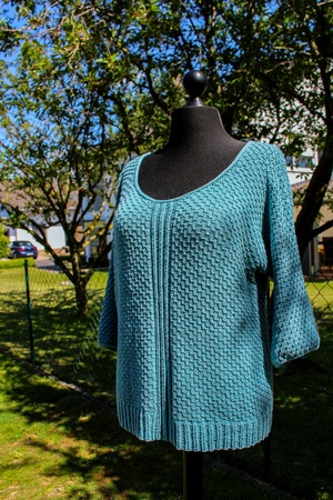 Die Strickanleitung ist sehr ausführlich mit Text, Chart, Beispielen, Skizzen und einem Bild Tutorial zum vernähen der flachen Three Needle Bind Off Schulternaht sowie Tragebildern über 10 Seiten versehen.