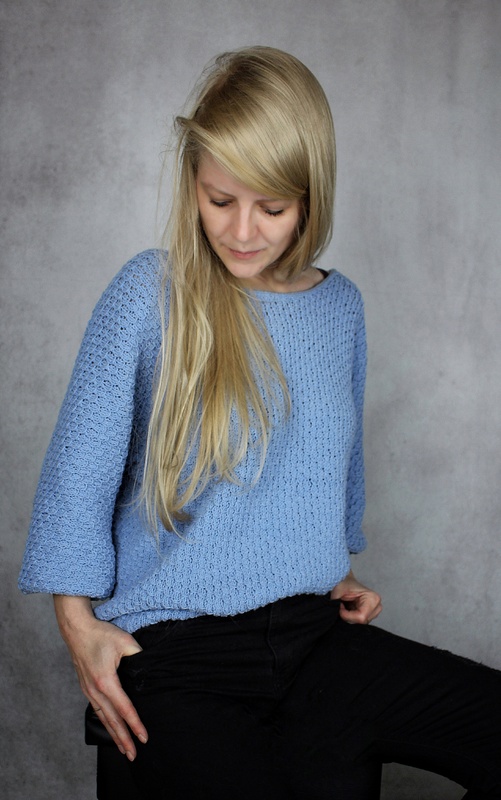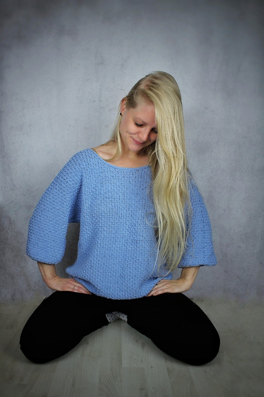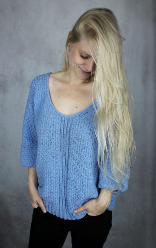 Achtung: Das Modell trägt den Pullover Oversized (Konfektionsgröße XS, gestrickt wurde in Größe M, mehr dazu siehe Beschreibung