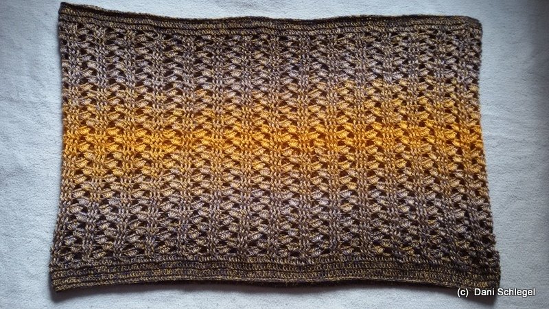 Der Loop ergab - mit dem von mir verwendeten Material - eine Länge von 134 cm und eine Breite von 24 cm.